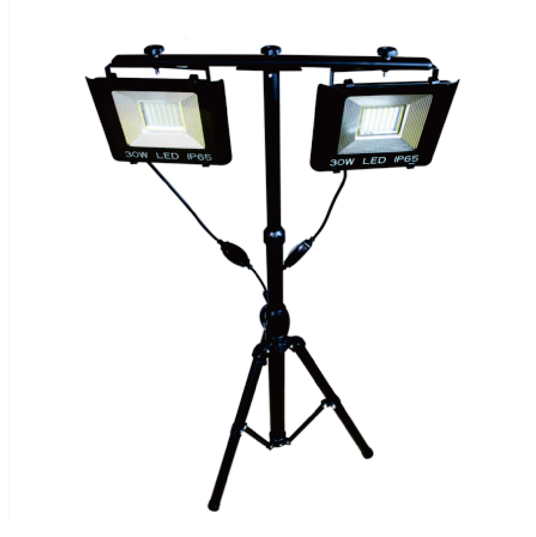 一套两盏灯(暖光、白光)使用LED灯珠、防锈框架、高效散热器和可旋转支架双灯同时使用可达6000流明。 |