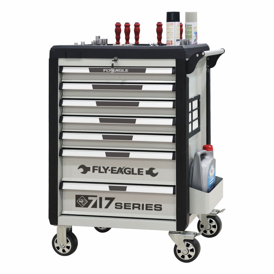 | 采用重型叠加式滚珠滑轨延长使用寿命,加长了伸展距离,使抽屉能100%拉开。两侧的网孔板扩展了工具车的使用功能,坚固的工具车上盖采用模具一次成型,可放置工具表面更容易清洁,工具车侧面设计有工卡盒子,可方便放置工卡,选用重型可承载450kg的脚轮。 |