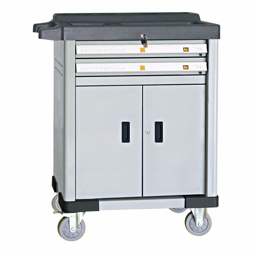 | 扶手采用模具压铸成型,精美耐用;工具车角柱采用模具化一次成型精美耐用;选用重型可承载300kg双向刹车脚轮。 |