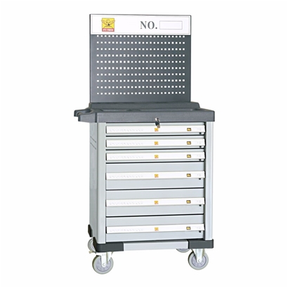 | 加装的通用网孔挂板使用更方便;每个抽屉都装有独立的防倾斜自锁系统,保证了使用安全;采用重型叠加式滚珠滑轨延长使用寿命,加长了伸展距离,使抽屉能100%拉开;选用重型可承载600kg双向刹车二次解锁脚轮。 |