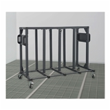 用于各种车型轮胎、轮毂的运输以及存放,设计有多个轮胎摆放架,降低劳动度,提高工作效率;万向带刹车轮子可在钣喷车间内任意移动;支架两侧边设计有扶手,使摆放架移动更加方便,实用。