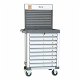 加装的通用网孔挂板使用更方便,方便拆装的附加通用网孔挂板,工具车侧面可选配零件盒,配有模具一次成型的通用长短工具挂钩。